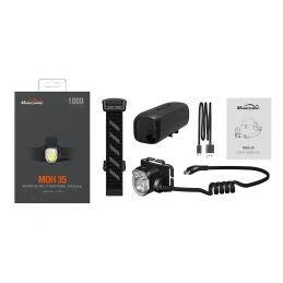 Linterna frontal Magicshine MOH 35 para todo tipo de actividades al aire libre, incluyendo senderismo, camping, montañismo, correr, esquiar y ciclismo, entre otras.